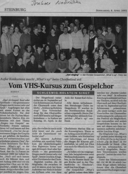 Vorstellung des Chores für das Chorfestival im Sept. 2002