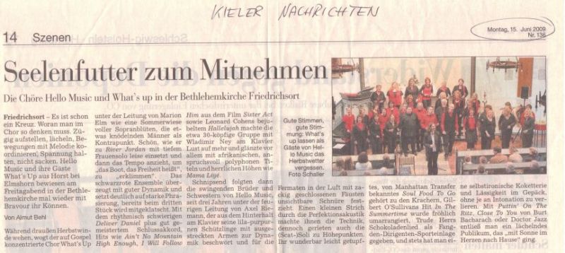 Die Norddeutsche Rundschau berichtete am 8.11.2010 über das Benefizkonzert am 31.10.2010 in Itzehoe